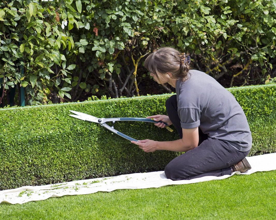 Regular lawn mowing and garden care.