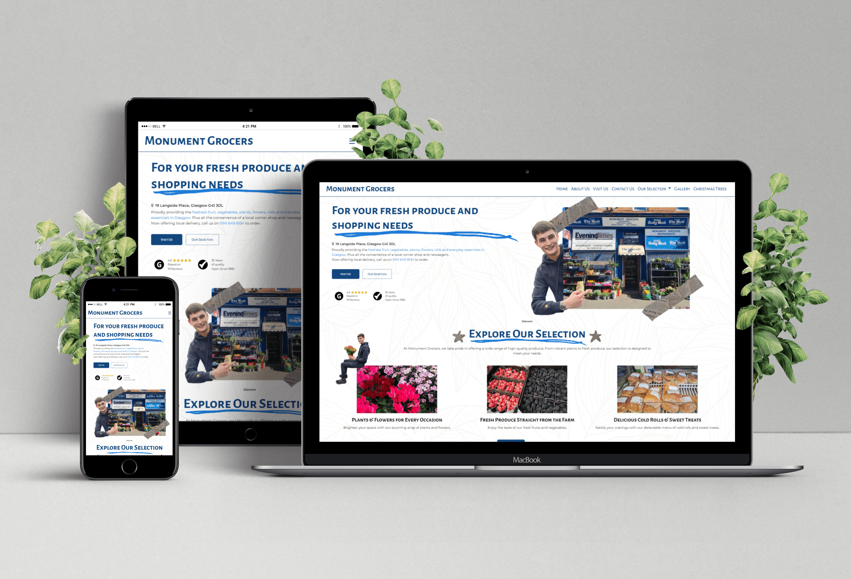 Monument Grocers is based in Langside, Glasgow, and is at the heart of the local community. They offer far more than most people expect: Christmas trees, flowers, plants, fresh groceries, and a convenience-style range of everyday items. Despite being well known offline, their online presence was almost zero, just a basic Facebook page and an unclaimed Google Maps listing.